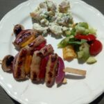 Ook een brochette die je zelf maakt is lekkerder, de groentjes zijn nog fris knapperig en lekker!